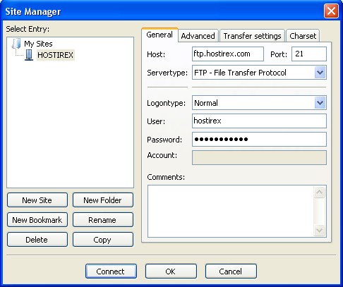 U polje Host unesite ftp adresu iz Aktivacionog mail-a koji ste primili prilikom aktivacije hosting naloga, kao i pristupne login podatke: User i Password. Ostale parametre odaberite kao na slici (Slika 2.)